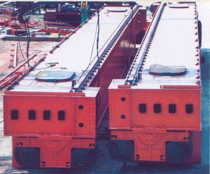 橋架在高架軌道上運(yùn)行的一種橋架型起重機(jī),又稱(chēng)天車(chē)。橋式起重機(jī)的橋架沿鋪設(shè)在兩側(cè)高架上的軌道縱向運(yùn)行,起重小車(chē)沿鋪設(shè)在橋架上的軌道橫向運(yùn)行,構(gòu)成一矩形的工作范圍,就可以充分利用橋架下面的空間吊運(yùn)物料,不受地面設(shè)備的阻礙。這種起重機(jī)廣泛用在室內(nèi)外倉(cāng)庫(kù)、廠房、碼頭和露天貯料場(chǎng)等處。