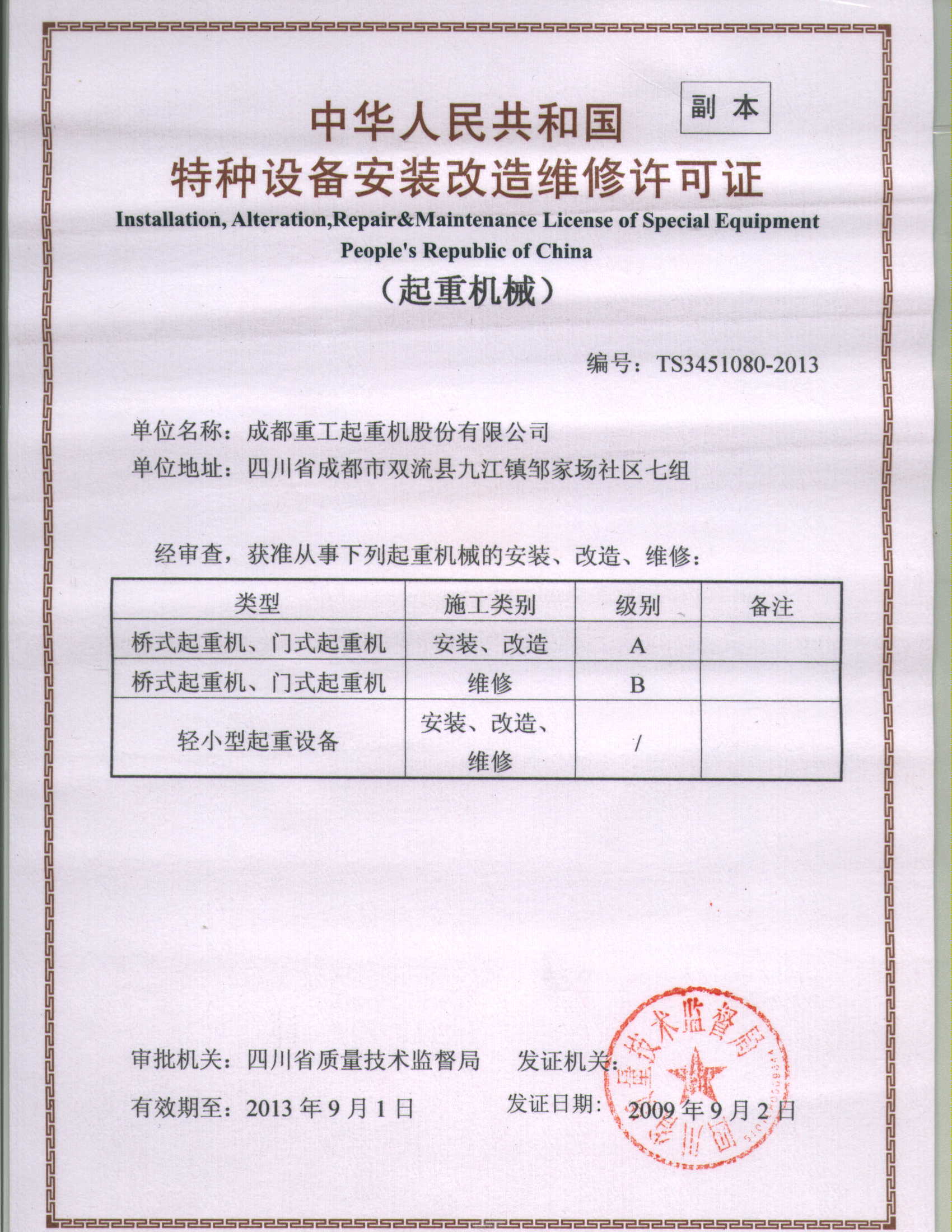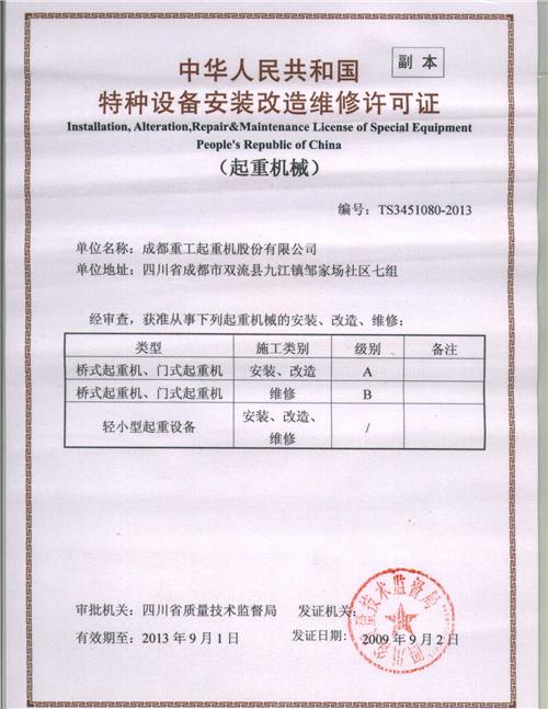 成都重工起重機(jī)股份有限公司©2012 版權(quán)所有 地址:成都市雙流西南航空港經(jīng)濟(jì)開(kāi)發(fā)區(qū)空港三路903號(hào)